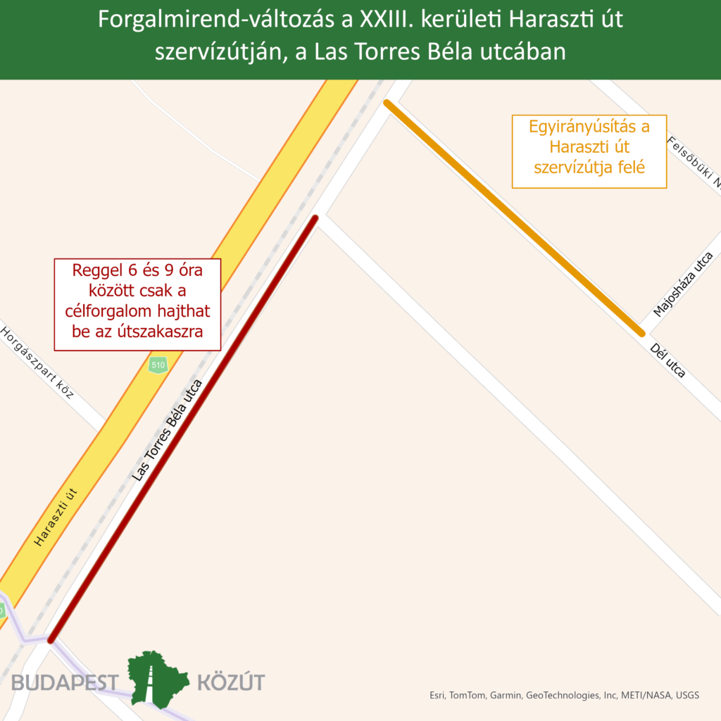 - A lakosság érdekeit szem előtt tartva változik a forgalmi rend a XXIII. kerületben a Haraszti út szervízútján, a Las Torres Béla utcában